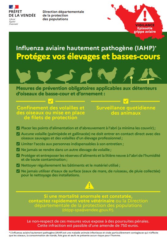 Mesures de prévention obligatoires applicables aux détenteurs d'oiseaux de basse-cour et d'ornement