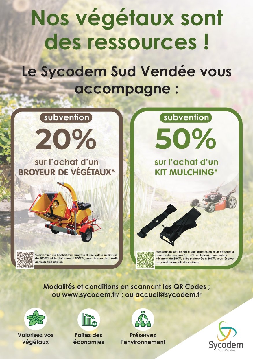 Plus d'infos sur : https://www.sycodem.fr/des-solutions-pour-reduire-mes-dechets/les-subventions-du-sycodem-broyeur-mulching/